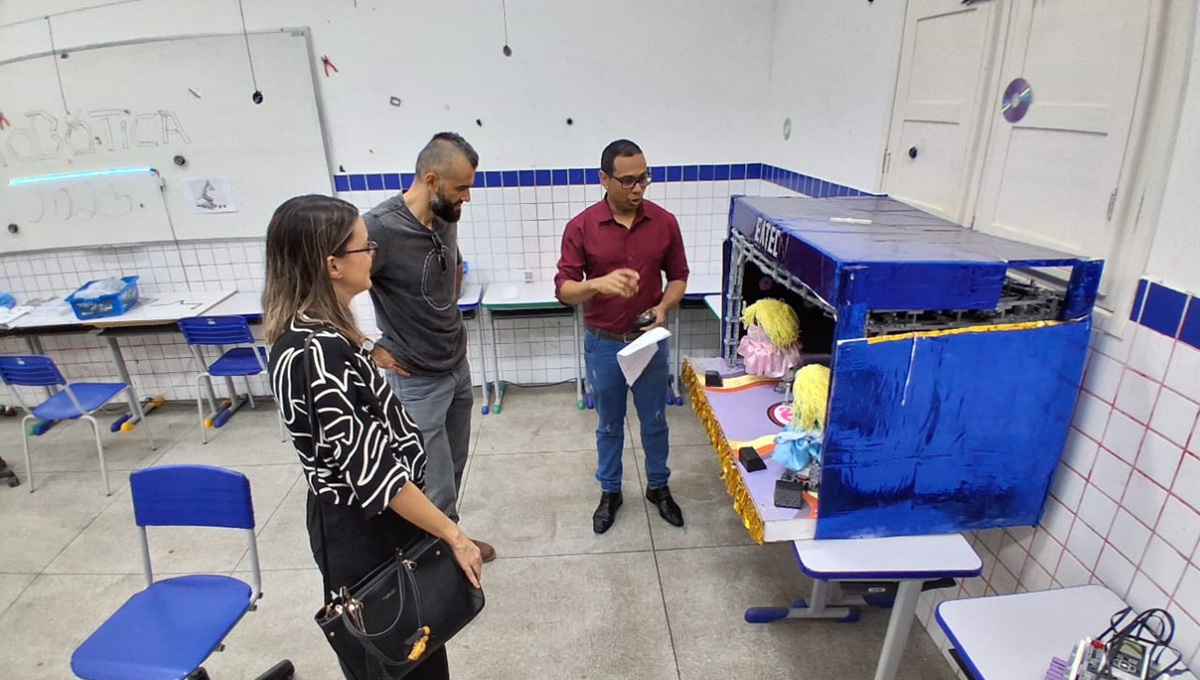 Durante o evento, os servidores da UEPB, Filipy Galiza e Juliana Marques, que acompanham os estagiários do Programa Primeira Chance, puderam conhecer os diversos projetos técnicos, artísticos e de inovação desenvolvidos na Escola.