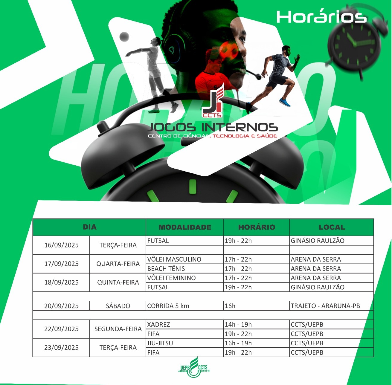 Programação divulgada para os Jogos Internos do CCTS.